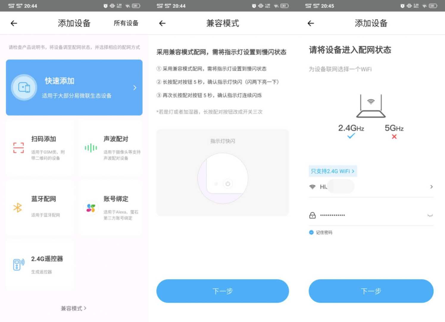易微联APP添加设备,远兼容模式,联网配对。