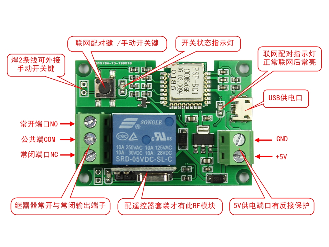 继电器带microusb接口,到货后在办公室测试了一下,APP联网配对挺快的。